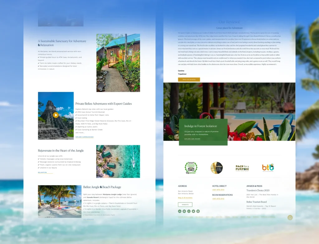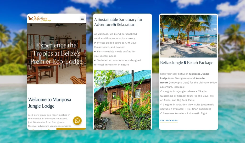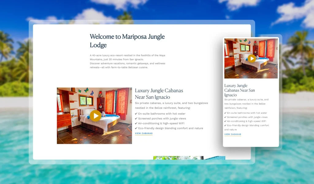 The new site helped Mariposa attract more visitors, increase direct bookings, and better connect with travelers worldwide. With an engaging, mobile-ready design and clearer messaging, more guests are saying yes to a jungle escape—and loving it.