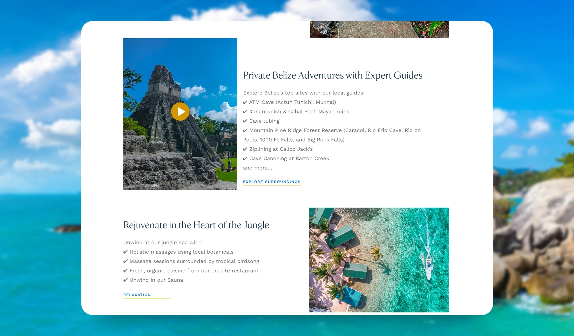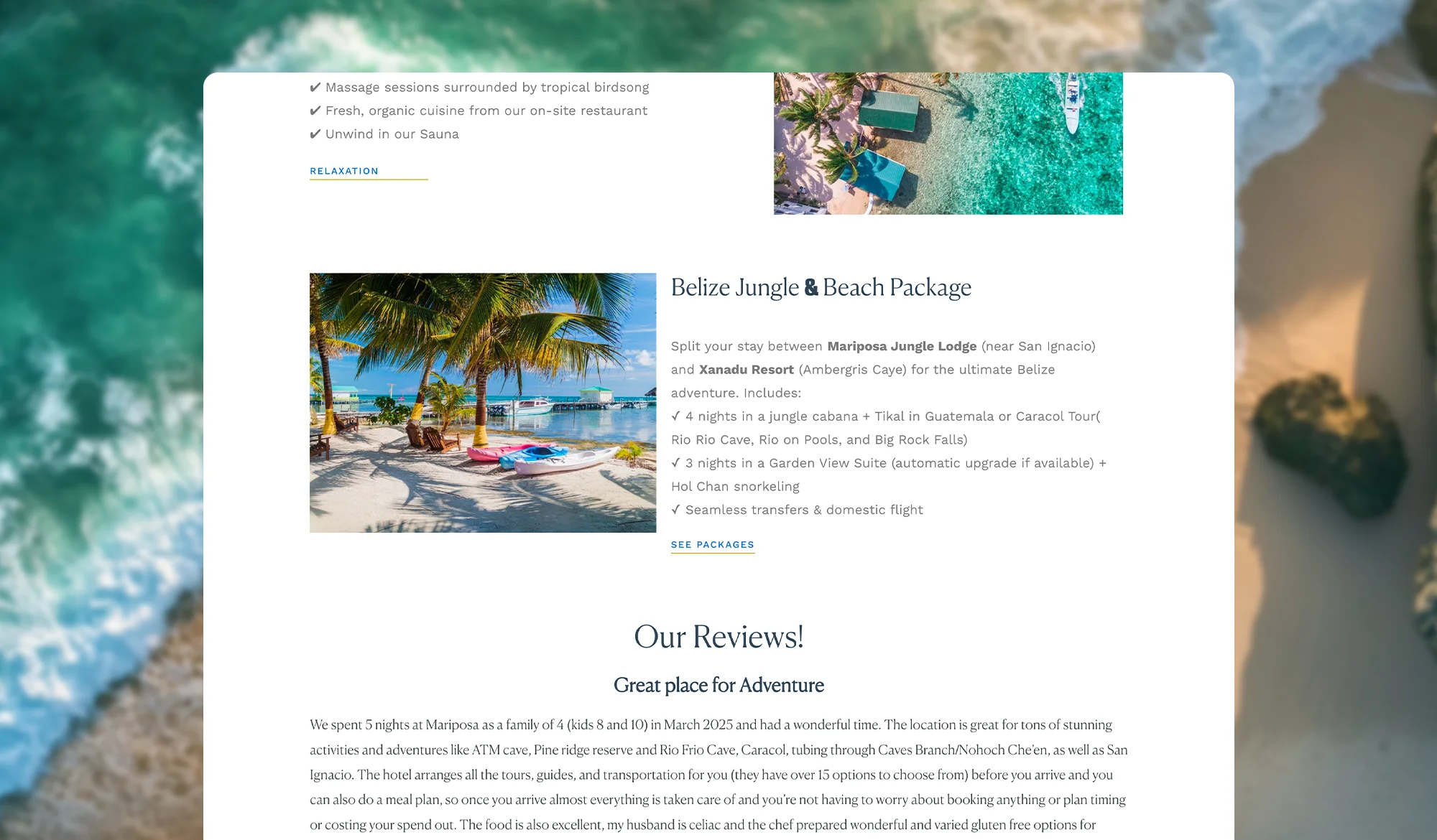 We gave the website a fresh, modern design with smooth navigation, fast load times, and clear calls-to-action. The updated layout makes it easy for visitors to explore cabanas, book tours, and feel the spirit of the jungle. SEO-friendly content and stunning visuals now show off everything that makes Mariposa special.